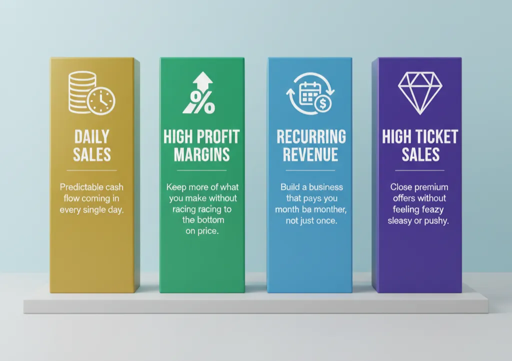 They think they need to wait months or even years to build up to these pillars. First get some small sales. Then work on margins. Maybe add a subscription later. Maybe one day offer something high-ticket.