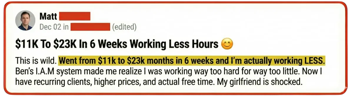 After successfully implementing the I.A.M. System in their business, they skyrocketed revenue anywhere from 3-15X while also building a truly sellable asset that any investor would love to buy.